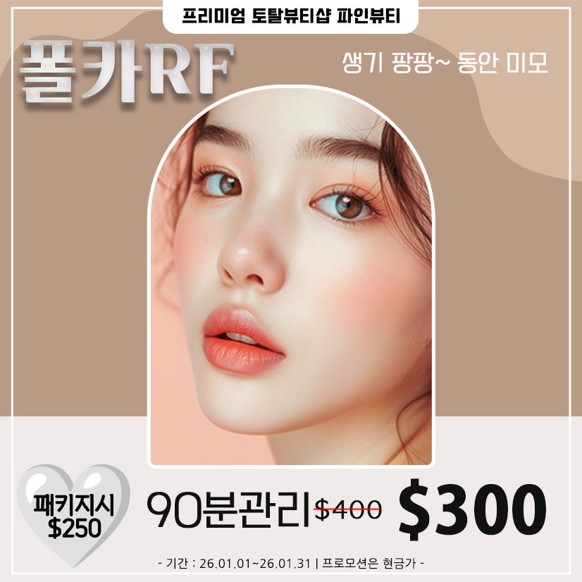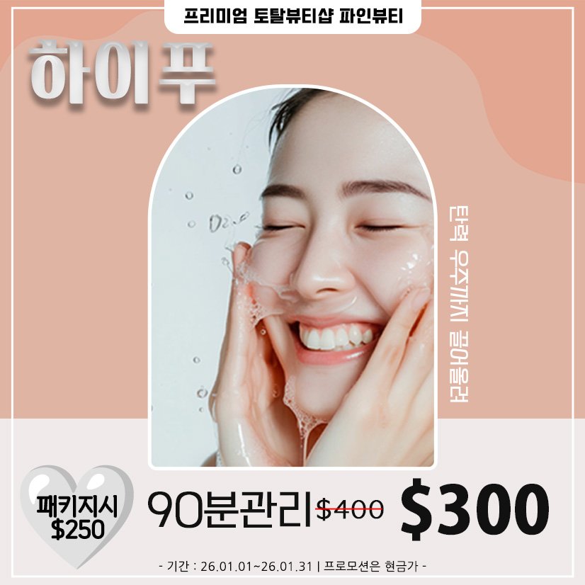 👉하이푸리프팅 90분관리 $400▶︎$300 (패키지 구매시 $250)