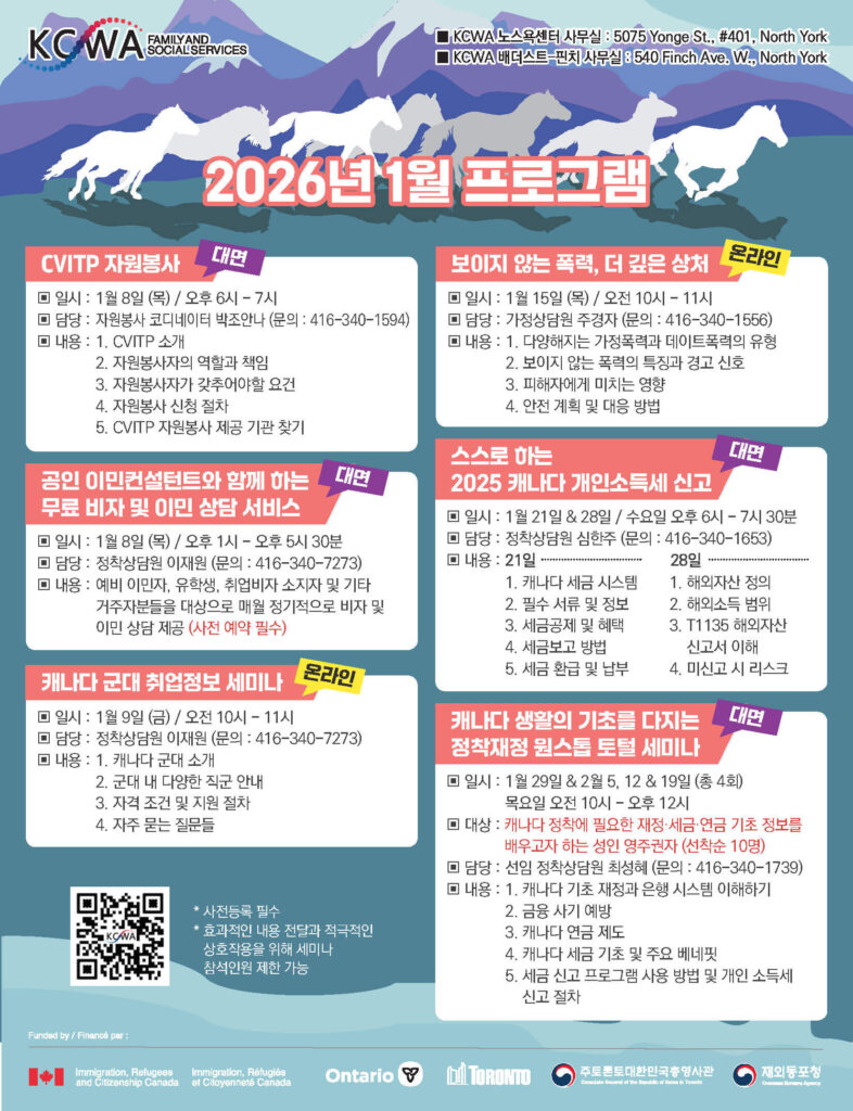 KCWA의 2026년 1월 프로그램을 소개합니다.