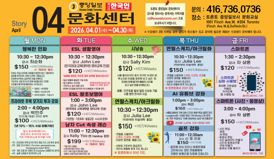 주캐나다한국문화원, 2026년 봄학기 문화 강좌 시작